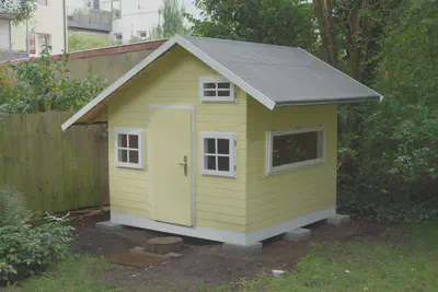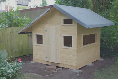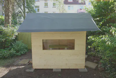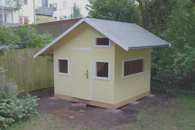 Im Baumarkt hatte ich überschlagen, was das Material kosten würden, und stellte fest, dass ich wahrscheinlich unter dem Verkaufspreis landen würde. Also habe ich die letzte Woche des Urlaub jeden Tag damit verbracht, das Haus von Grund auf selbst zu bauen und auch anschließend noch einige Abende und Samstage, um es fertigzustellen. Dabei habe ich mir viele Anregungen aus dem Netz, von Kollegen und Freunden geholt und teile folglich das Ergebnis auch mit euch.