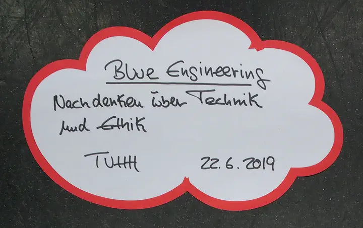 Auf Einladung der Dozentinnen des Blockseminars Blue Engineering habe ich am 22. Juni 2019 eine Workshopeinheit zu Technik und Ethick in den Ingenieurwissenschaften geleitet. Versammelt waren Studierende aus sehr vielen verschiedenen Fachrichtungen der Ingenieurwissenschaften.